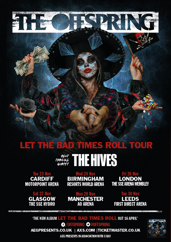 Ahead of the release of their new album ‘Let The Bad Times Roll’ The Offspring have announced a huge arena tour for November 2021 aptly titled ‘Let The Bad Times Roll Tour’. Unmissable support also comes from Swedish rockers The Hives!